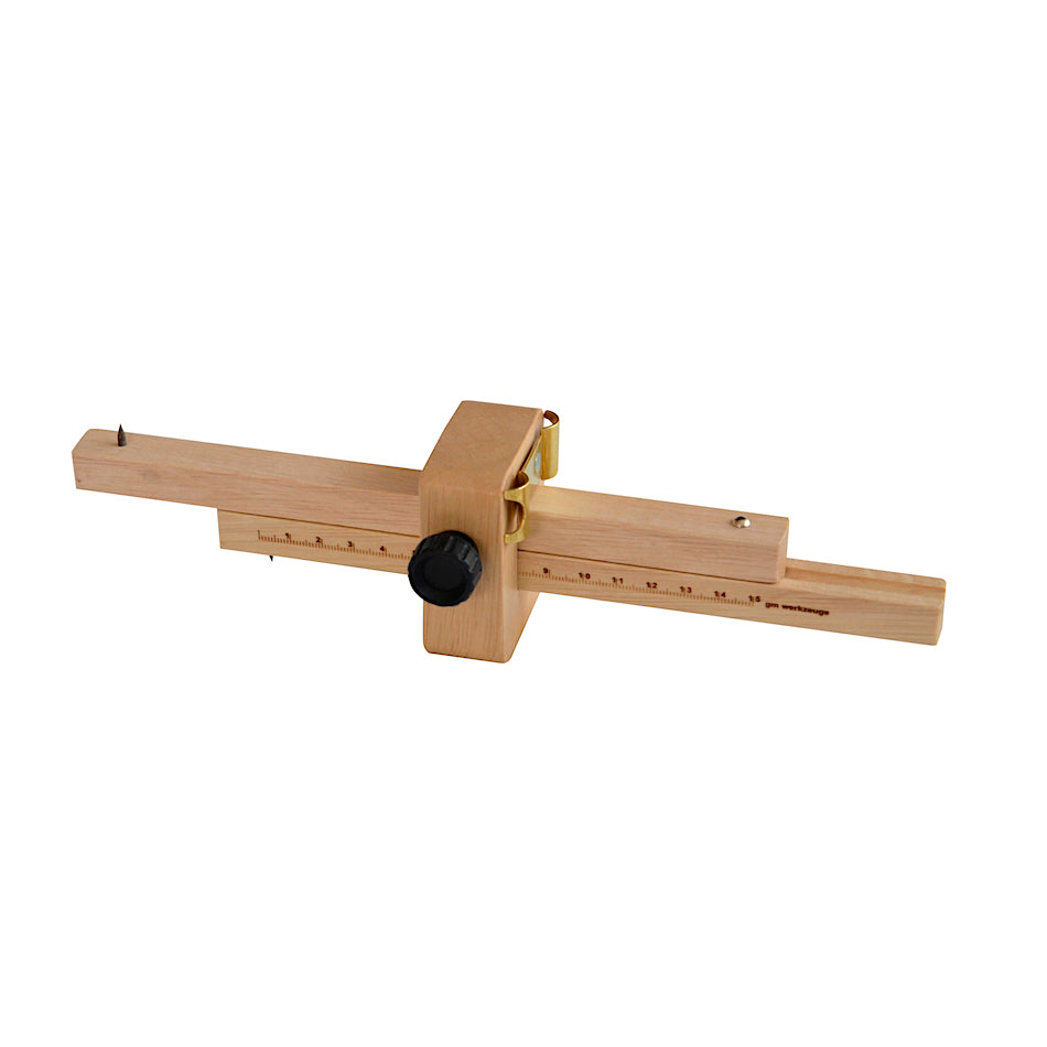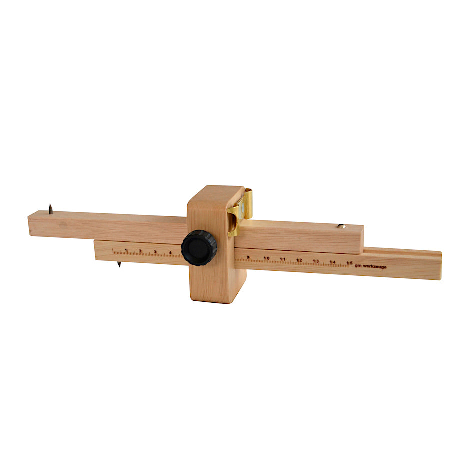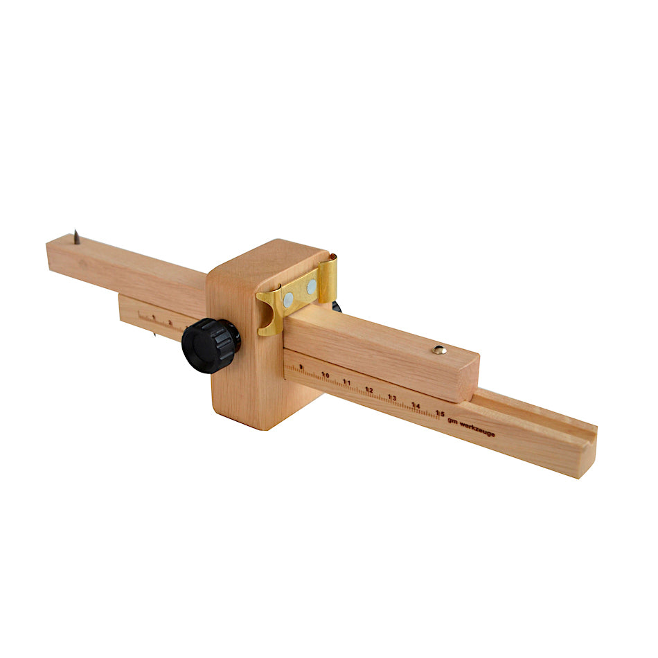 gm - Streichmaße sind präzise Werkzeuge zum parallelen Anreißen von Breiten- und Dickenmaßen. Alle Holzteile sind aus bestem Weißbuchenholz gefertigt. Durch die zwei verstellbaren und klemmbaren Stäbe können gleichzeitig unterschiedliche Anreißlängen eingestellt werden. Zur Verschleißminimierung werden gehärtete Anreißspitzen verwendet. Mit Kurvenanschlag zum Anreißen gekrümmter Flächen.
